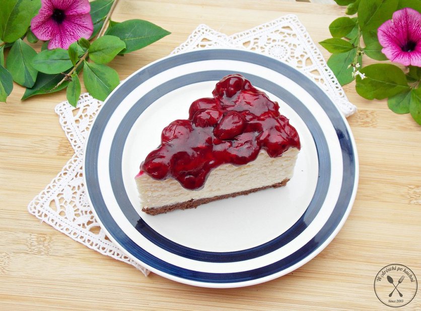 Sernik na zimno z białą czekoladą i frużeliną wiśniową