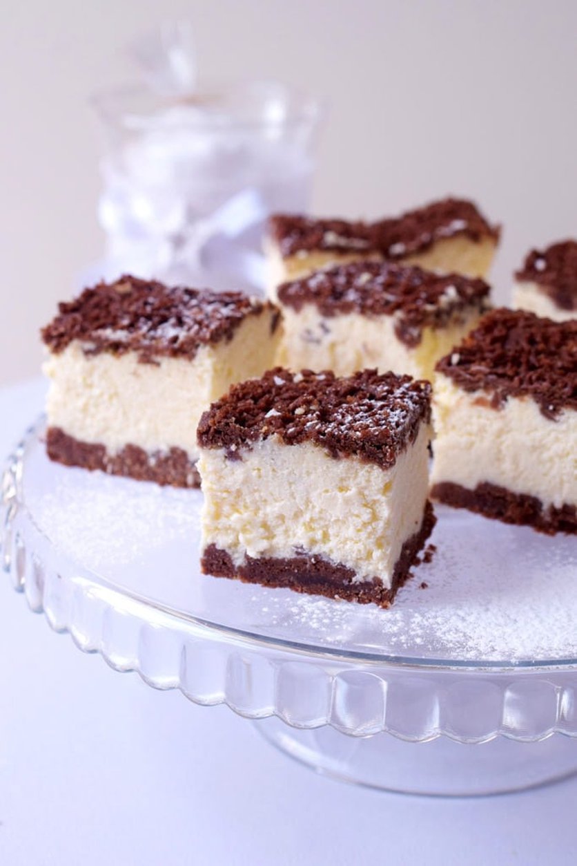 Sernik z mlekiem w proszku na kakaowym spodzie