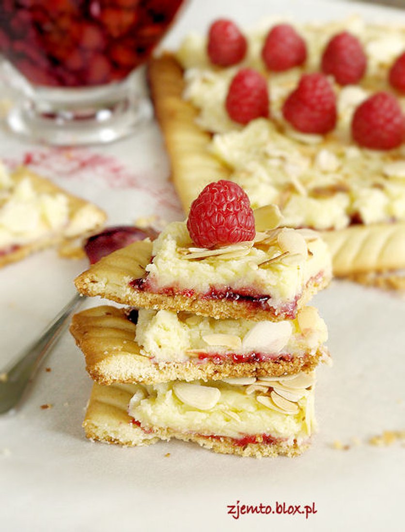 Mazurek z dżemem brzoskwiniowym i kajmakiem