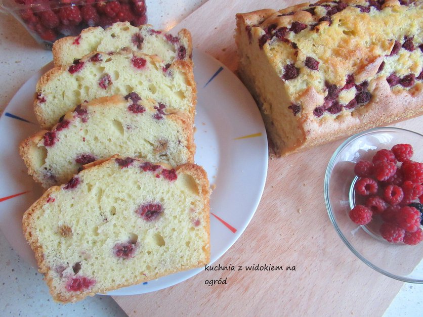 Błyskawiczna babka z malinami.