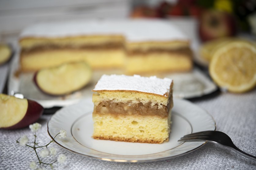 ciasto z jabłkami i kremem