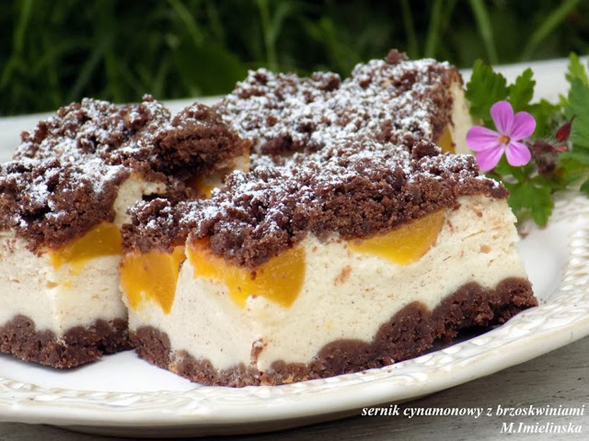 Cynamonowy sernik z brzoskwiniami