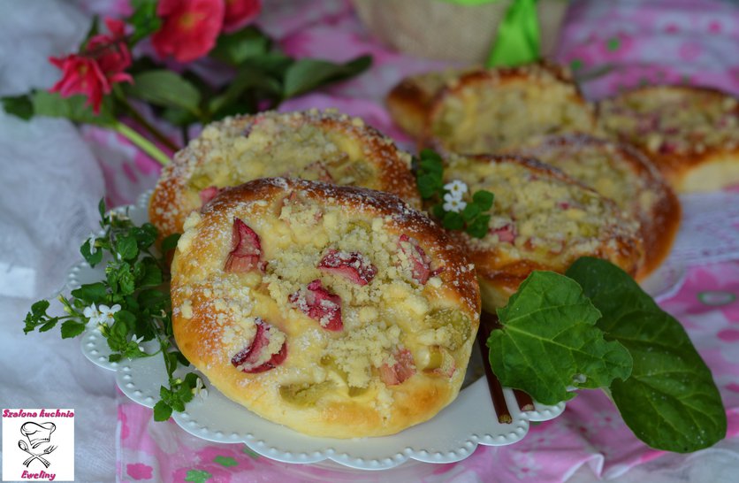 Drożdżówki z rabarbarem, budyniem i kruszonką