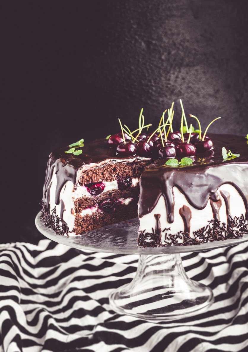 Czekoladowy torcik z wiśniami i kremem mascarpone