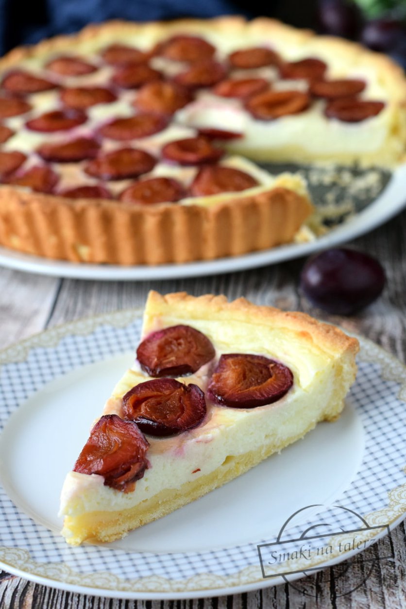 Tarta z kremem budyniowo-twarogowym i śliwkami