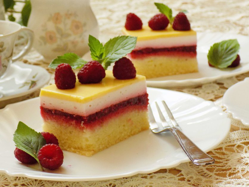 Ciasto malinowe z polewą ajerkoniakową