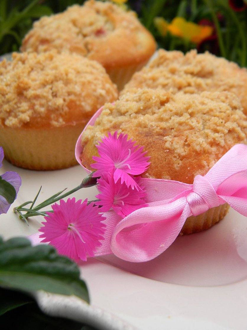 Babeczki z rabarbarem i cynamonową kruszonką