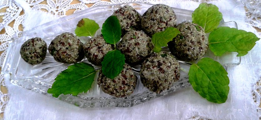 Miętowe kule mocy z młodym jęczmieniem,chia i bakaliami (Gluten & White sugar free)