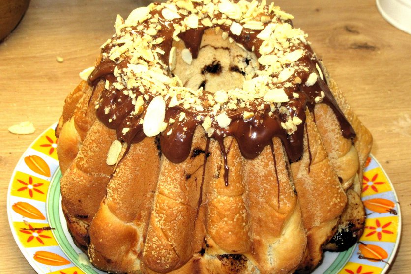 Pyszna babka Wielkanocna drożdżowa z powidłami-łatwa i ładna w przekroju