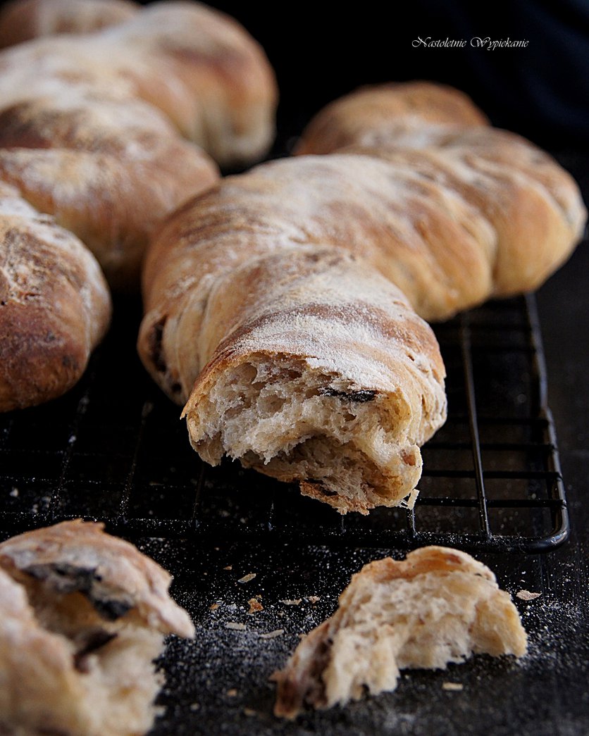 Orkiszowe bagietki z żytem i suszonymi śliwkami