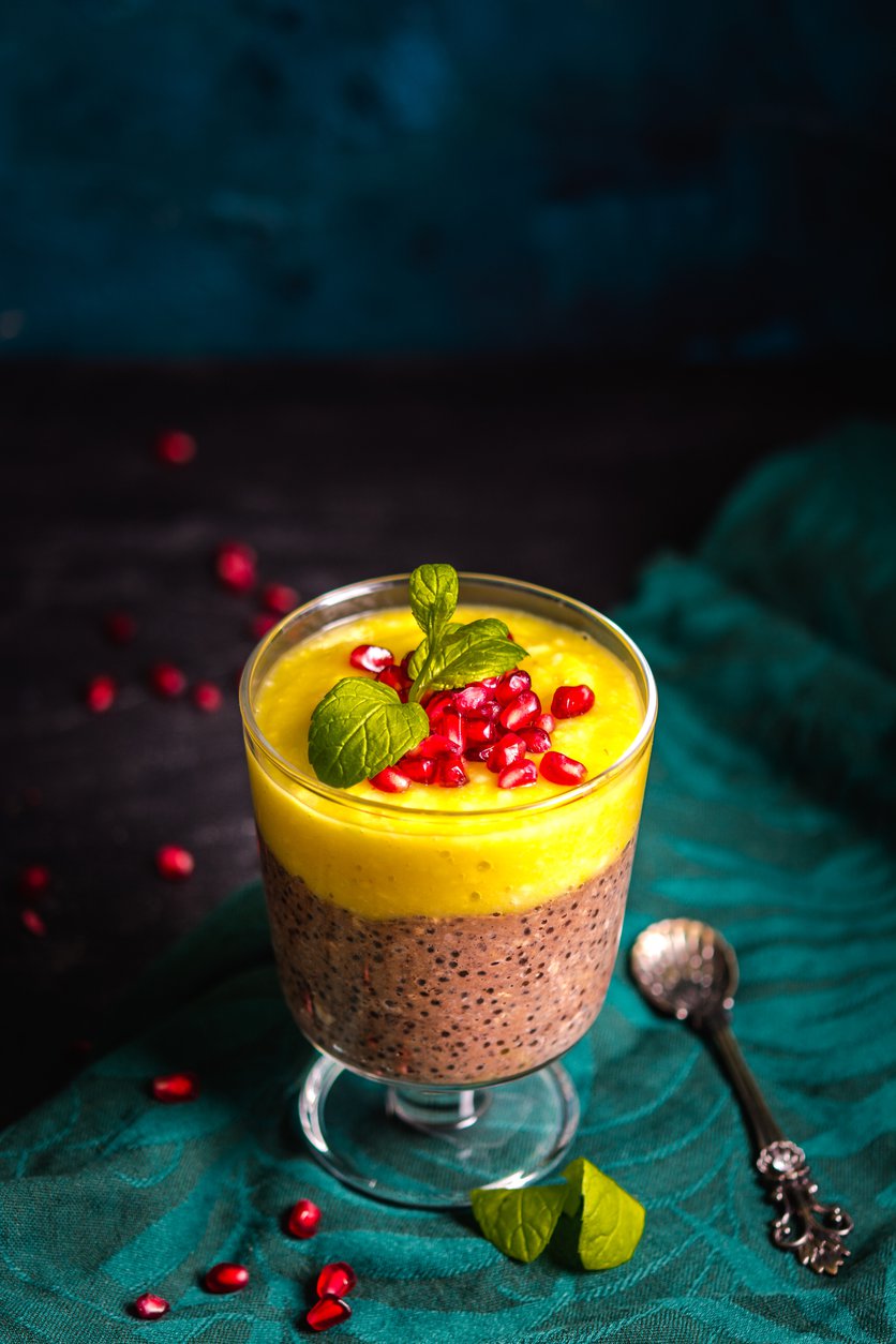 Czekoladowy pudding z tapioki z musem mango