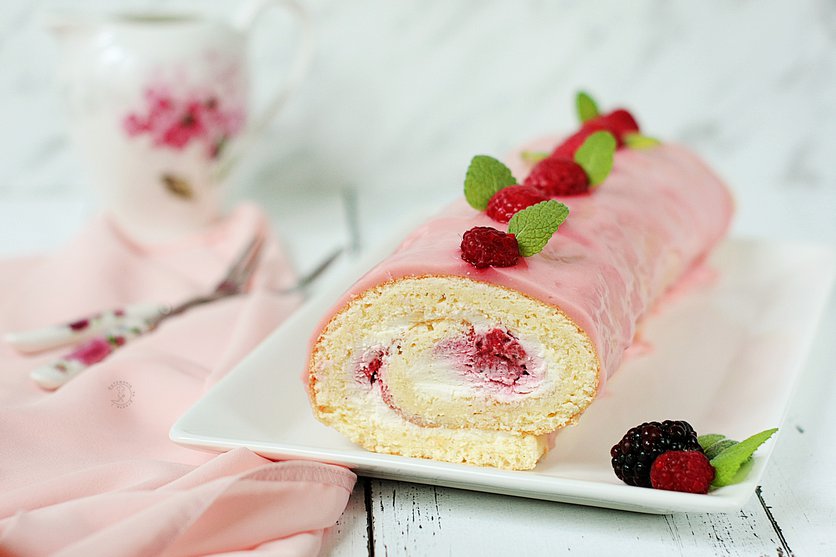 Biszkoptowa Rolada Z Mascarpone I Malinami W Polewie Jogurtowej