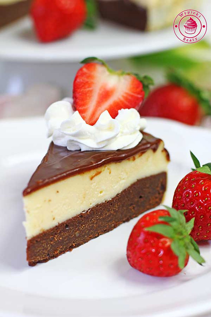 Sernik na spodzie brownie