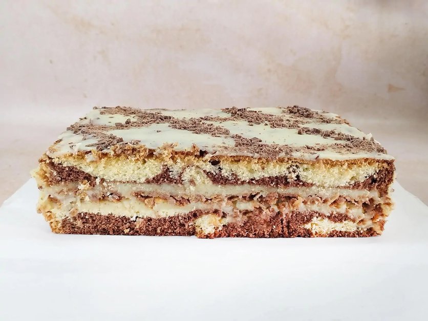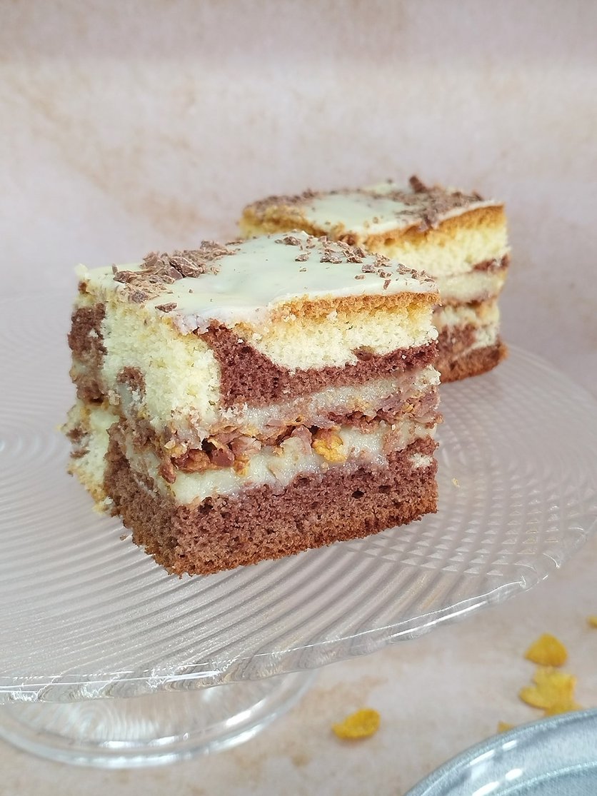 Ciasto przekładane z czekoladową chrupką i masą budyniową