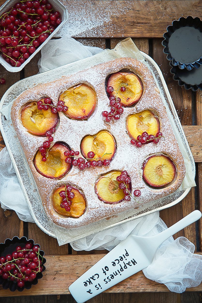 Ciasto ucierane z brzoskwiniami i czerwoną porzeczką