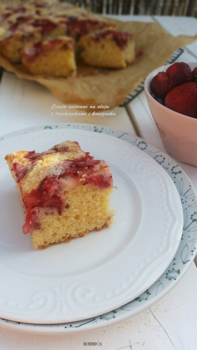 Ciasto ucierane na oleju z truskawkami i kruszonką ( najprostsze i najszybsze ciasto )