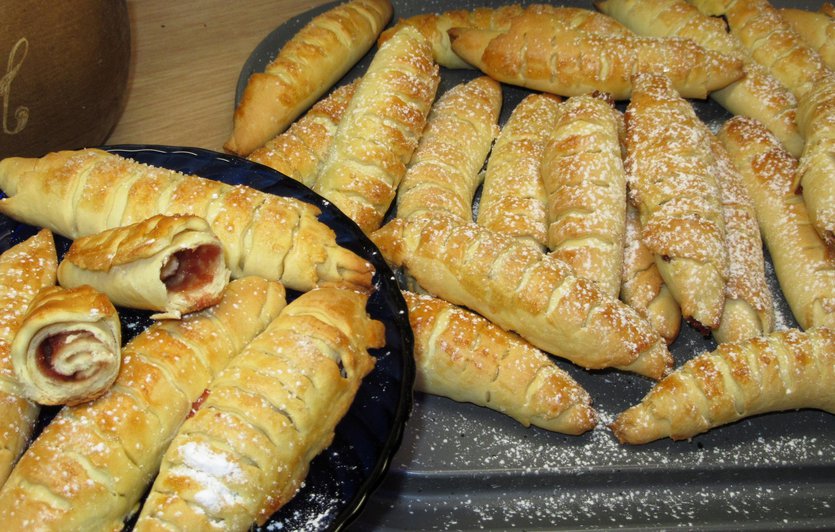 Krucho drożdżowe ciasteczka CYGARETKI z marmoladą różaną-pyszne, idealne na Tłusty Czwartek