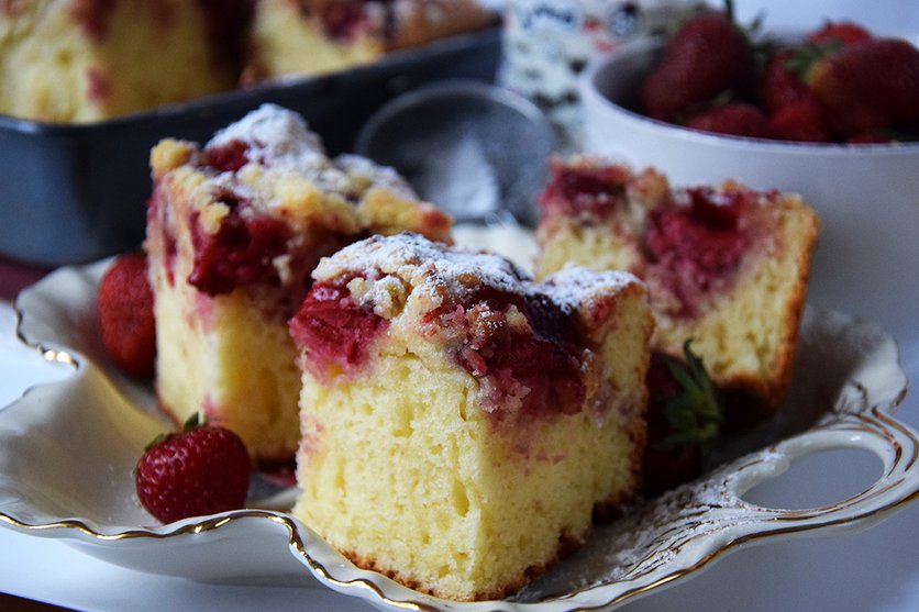Ciasto jogurtowe z truskawkami i kruszonką