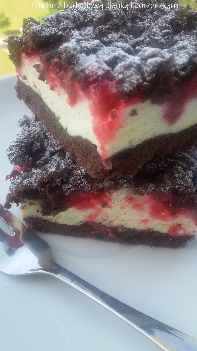 ciasto kruche z porzeczkami i budyniową pianką