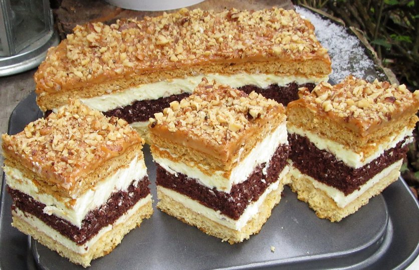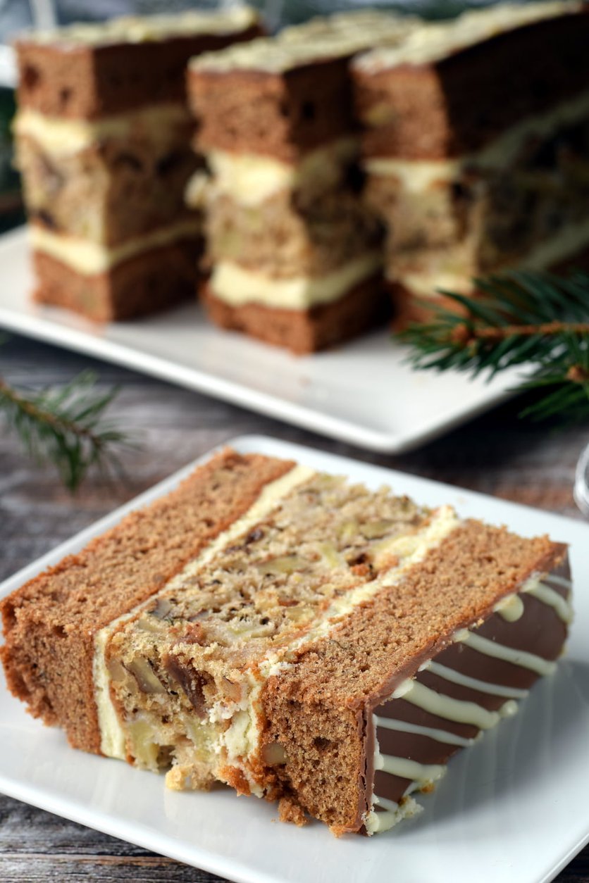 Ciasto piernikowe “Kopernik” z kremem orzechowym i polewą czekoladową