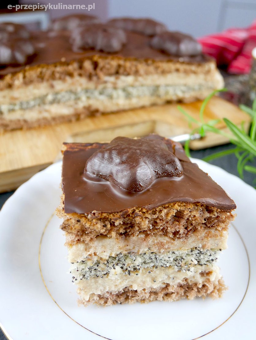Ciasto piernikowe “Kopernik” z kremem orzechowym i polewą czekoladową