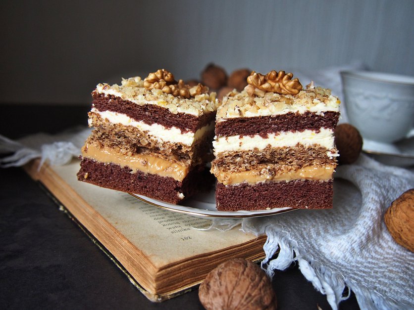 Przepis na czekoladowe ciasto z kajmakiem i orzechami włoskimi