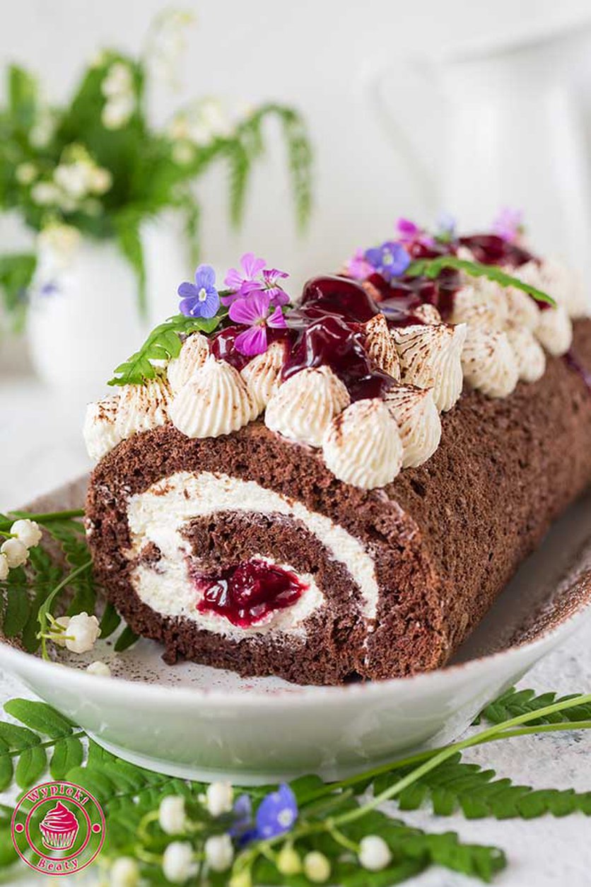 Czekoladowa rolada z czarnego lasu z wiśniami