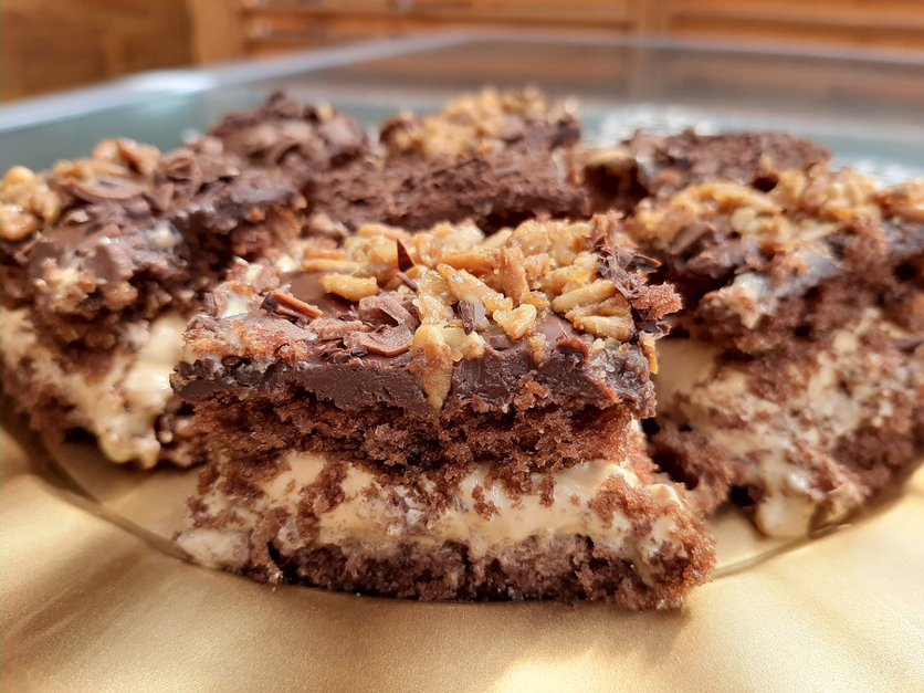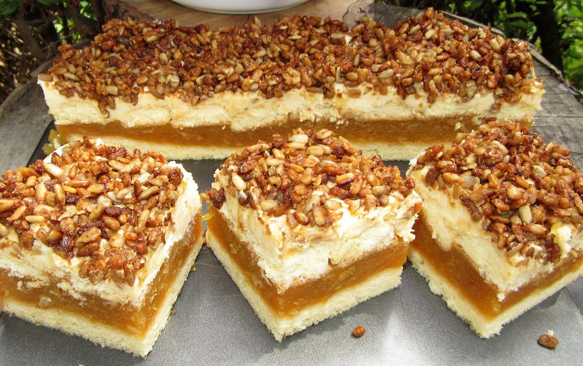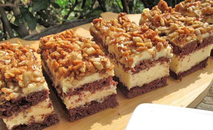 pyszne ciasto z kremem i prażonym słonecznikiem