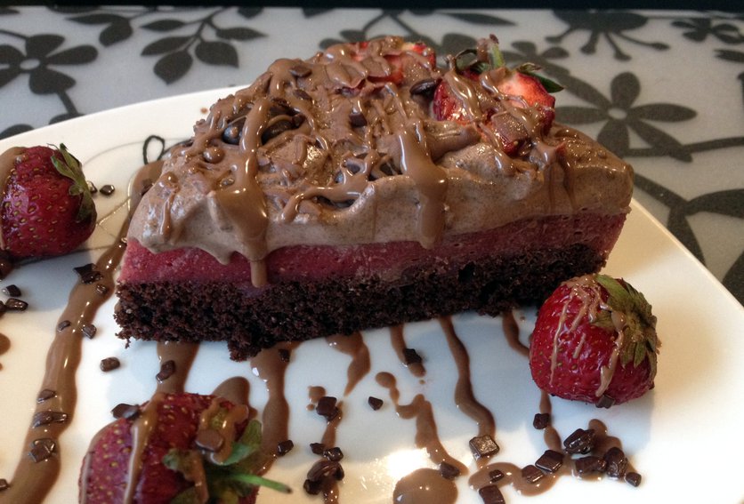 Ciasto Meeega czekoladowe z musem truskawkowym