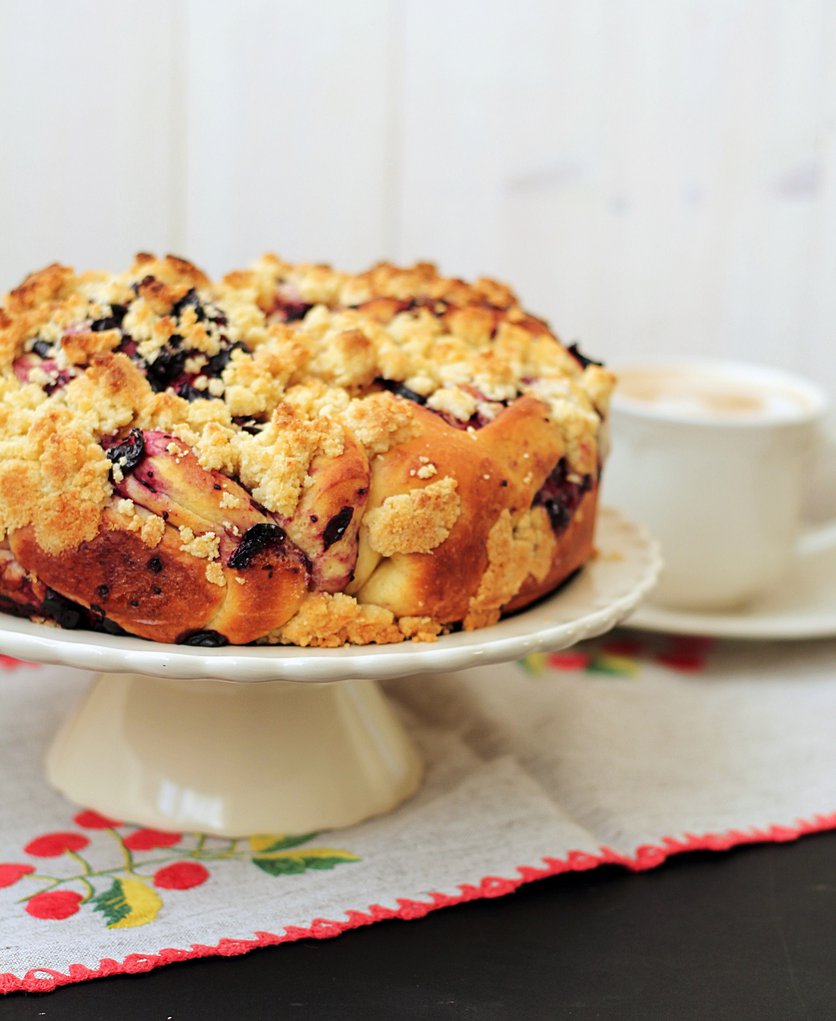Strucla drożdżowa z dżemem z czarnej porzeczki i marcepanem