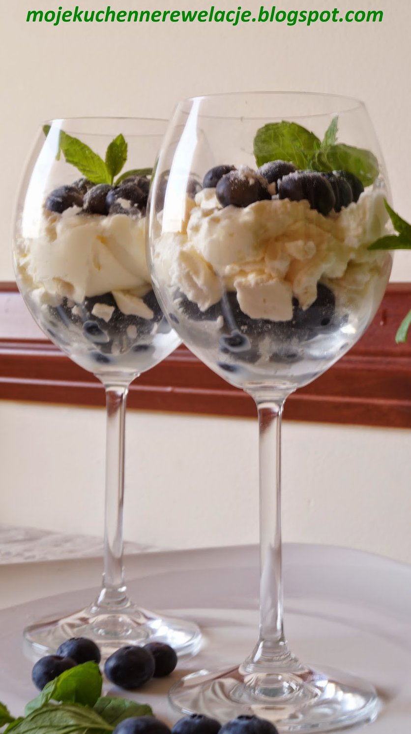 Bezowy deser z borówkami i mascarpone