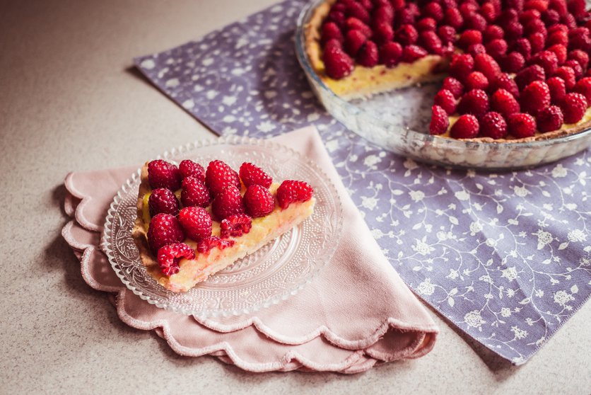 Tarta z budyniem i malinami