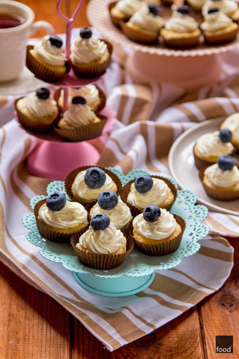 Babeczki biszkoptowe z bitą śmietaną i borówkami