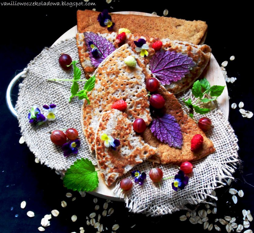 Mąka lniana zamiast jajka i Vege Pancakes z czerwonym agrestem