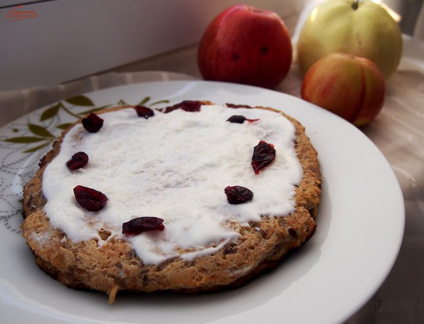 JOGURTOWY OMLET Z PŁATKÓW ORKISZOWYCH.