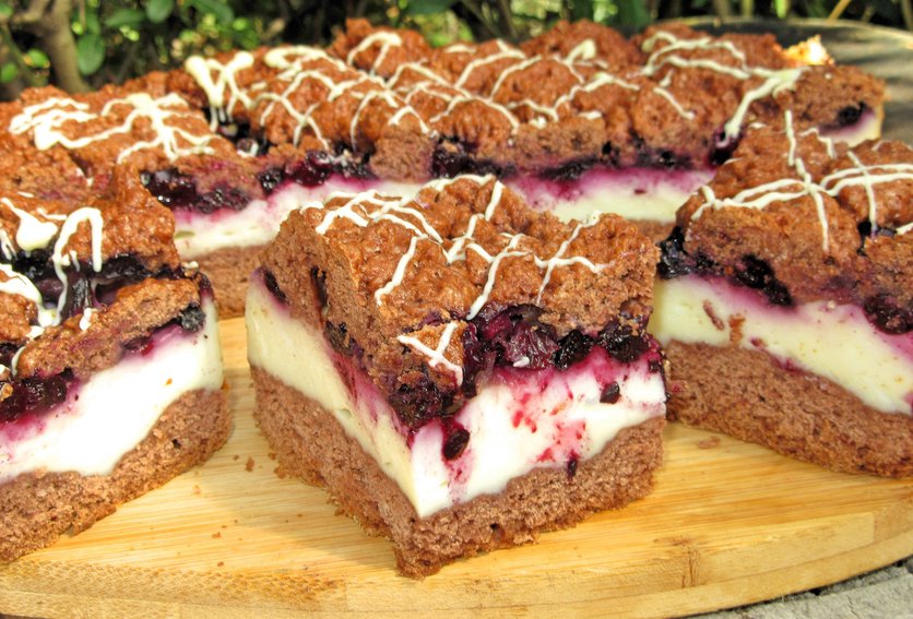 Ciasto kakaowe z budyniem i jagodami/borówkami -łatwe, szybkie i przepyszne