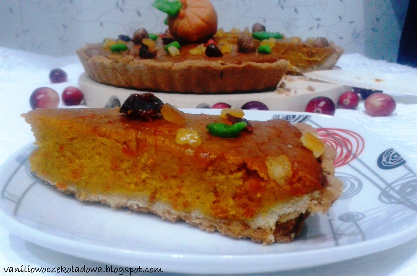 Amerykańskie ciasto dyniowe (American Pumpkin Pie) z pomarańczą i marcepanem.