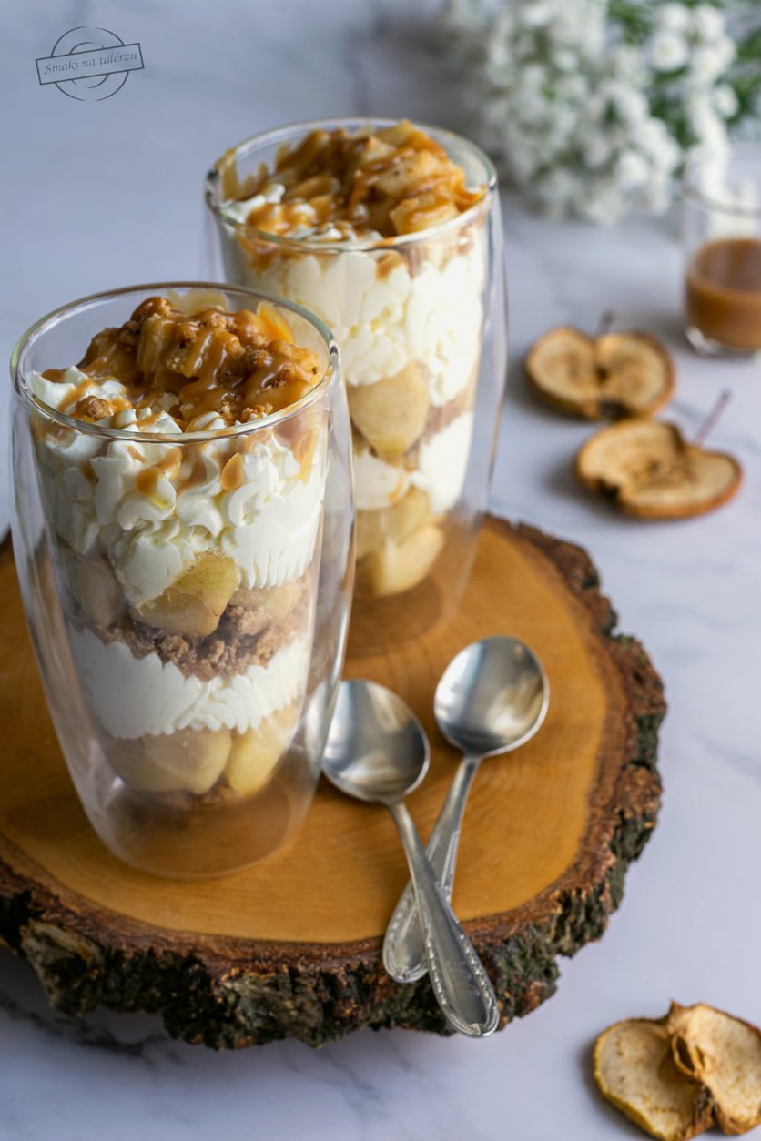 Deser szarlotkowy - karmelizowane jabłka ze śmietaną