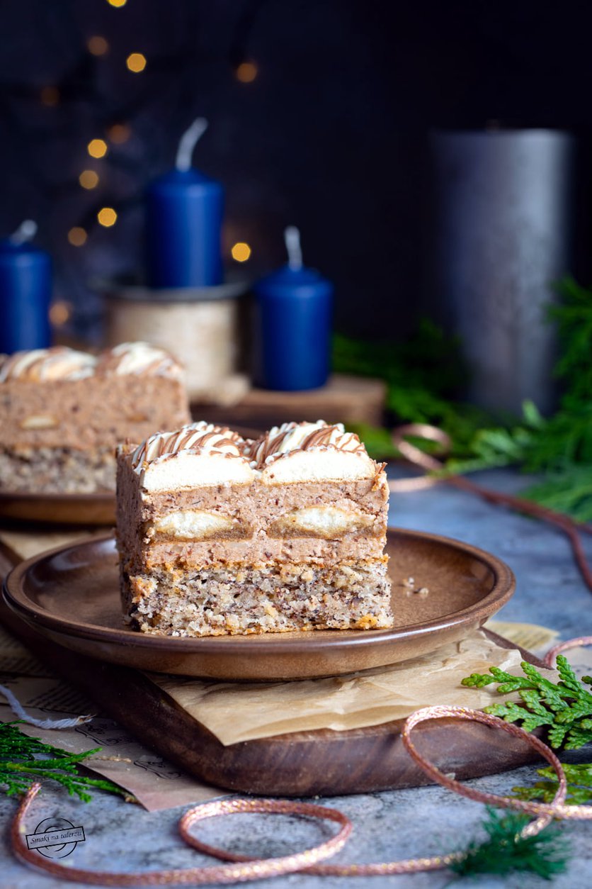 Ciasto piernikowe “Kopernik” z kremem orzechowym i polewą czekoladową