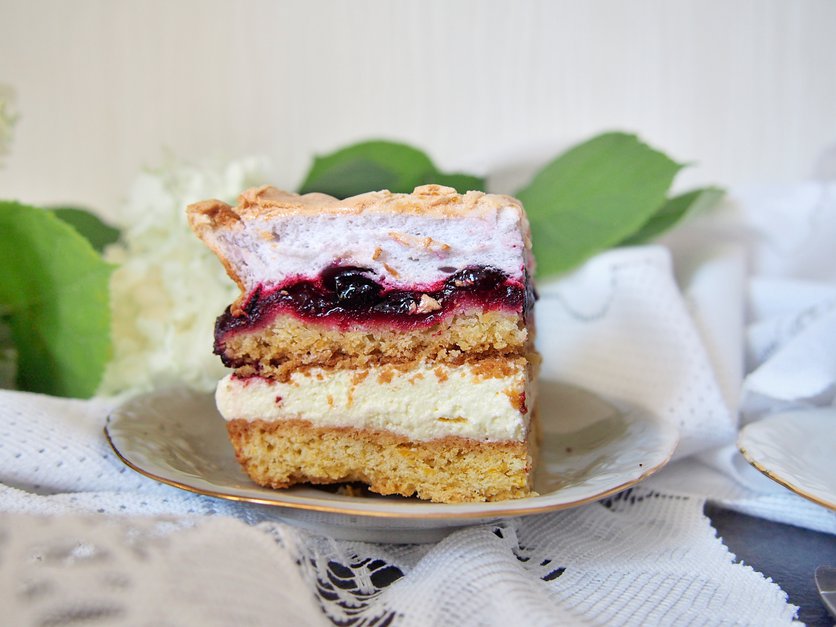 Kruche ciasto z jagodami i bezą