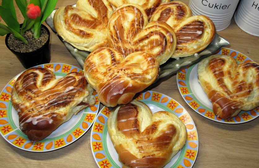 Drożdżówki serca/serduszka z serem i lukrem cytrynowym-pyszne, puszyste