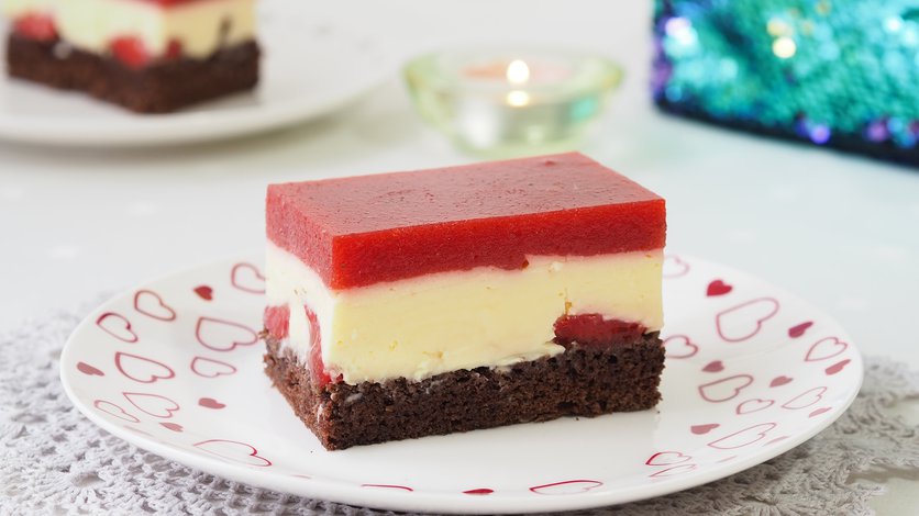 Ciasto budyniowe z musem truskawkowym