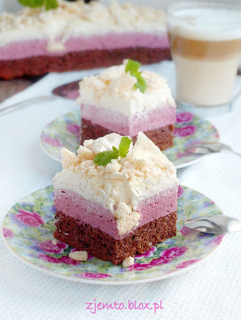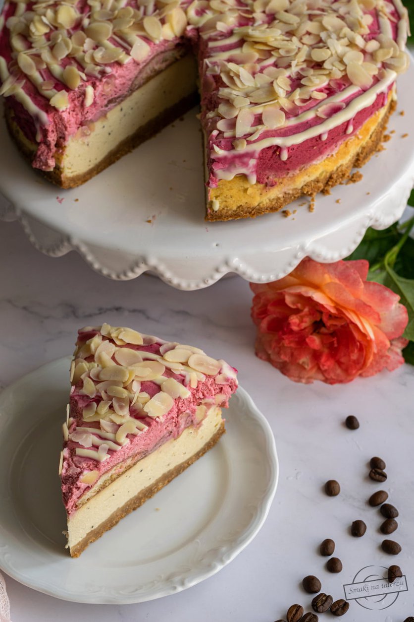Sernik kawowy z musem malinowym