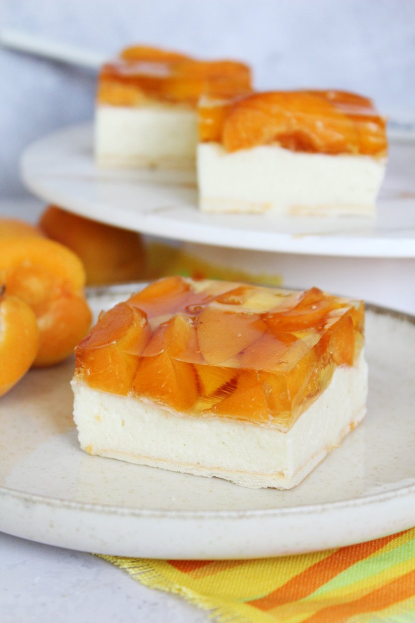 Ciasto z kaszą manną, galaretką i morelami