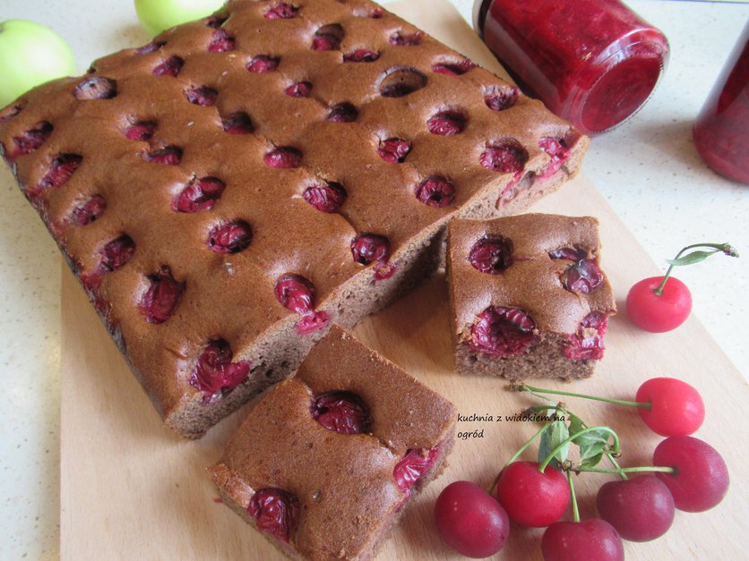 Prosty murzynek z wiśniami.