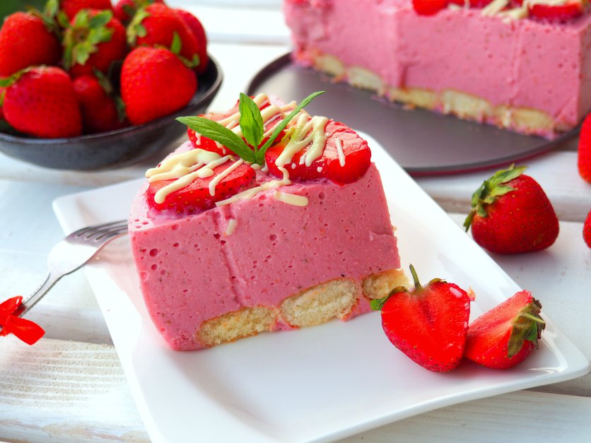 TRÓJKOLOROWE CIASTO TRUSKAWKOWE / BEZ PIECZENIA