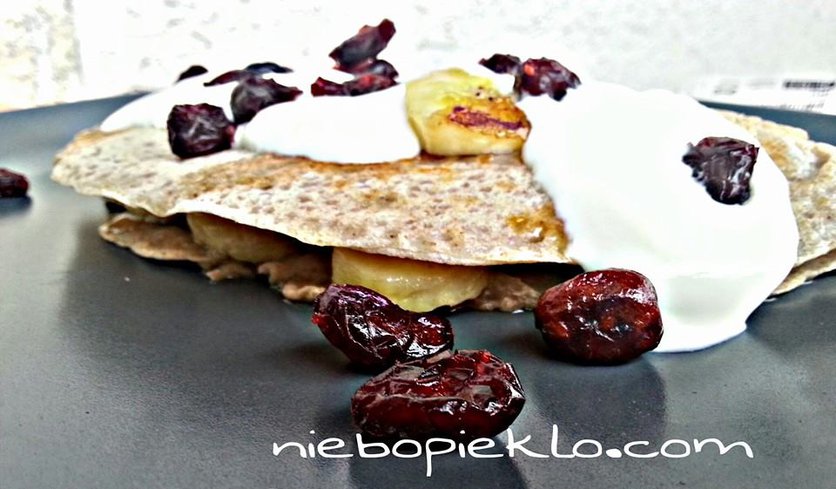 Naleśniki z samej gryki z bananem, miodem i żurawiną