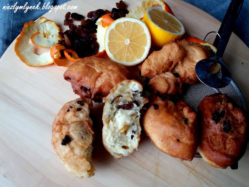 Holenderskie pączki z rodzynkami i pomarańczą