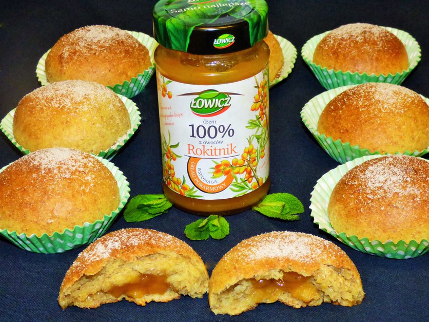 Pełnoziarniste drożdżówki z puree z dyni i dżemem z rokitnika