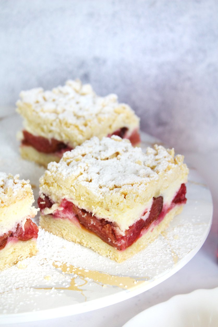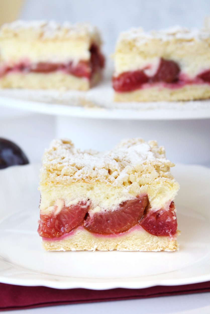 Ciasto ze śliwkami i budyniową pianką